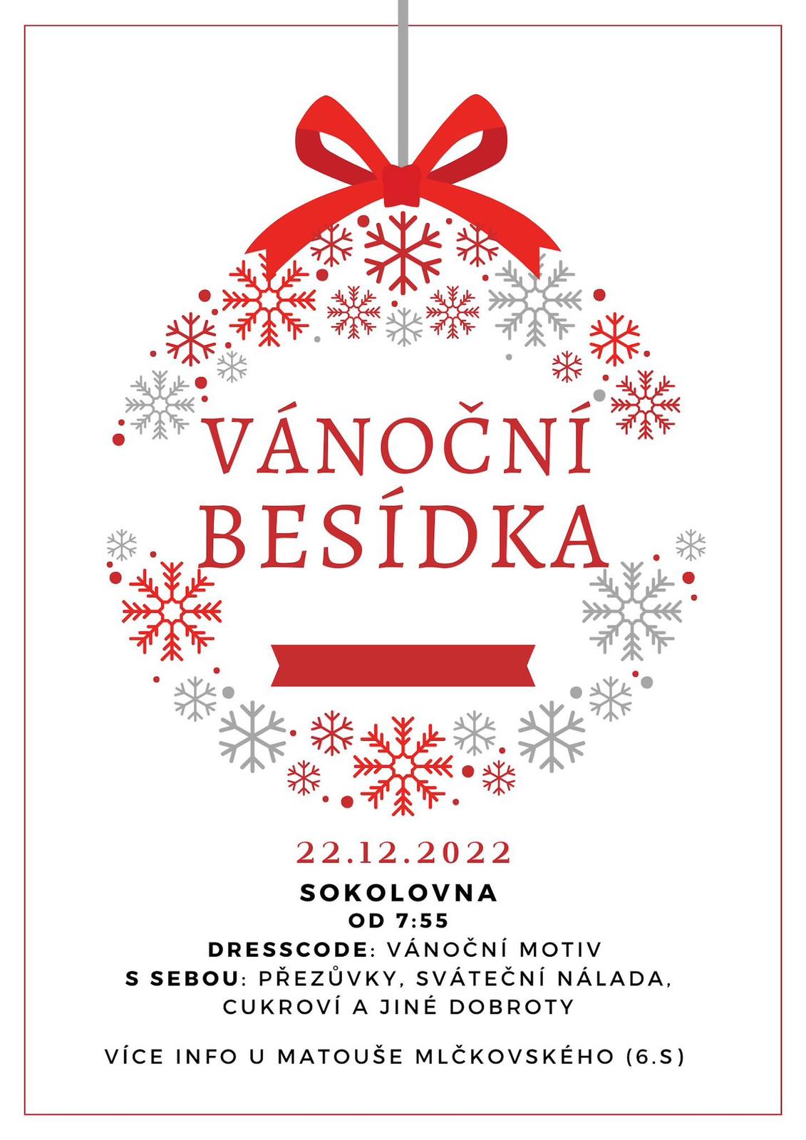 Pozvánka na Vánoční besídku 2022Ve čtvrtek 22. 12. 2022 proběhla v milevské sokolovně školní besídka milevského gymnázia. Jednalo se o interní akci, která byla určena pouze studentům a učitelům.