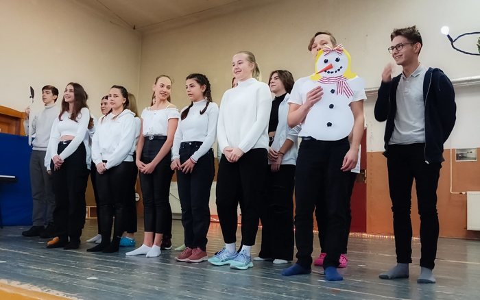 Matouš MlčkovskýLetošní besídka se uskutečnila ve stejném režimu, jako její minulý ročník, který proběhl ještě před coronavirovou epidemií. Každá třída si připravila vystoupení a to už jako celý kolektiv, případně pak vyslala svého zástupce. Letošnímu ročníku dominoval zpěv. Zpívalo se česky, anglicky a v případě sexty a jejího představení Cesta kolem Evropy za 10 minut i rusky, francouzsky, polsky, ukrajinsky nebo španělsky. K vidění byla dále recitace v podání Mariana Miklavčiče ze 4. A, vzdělávací cyklus Jak se slaví Vánoce ve světě, který si připravila sekunda či Vánoční kvíz z dílny primánů či vzpomínka na maturitní ples letošních mazáků (4. A a sexty), kteří zopakovali své půlnoční překvapení.