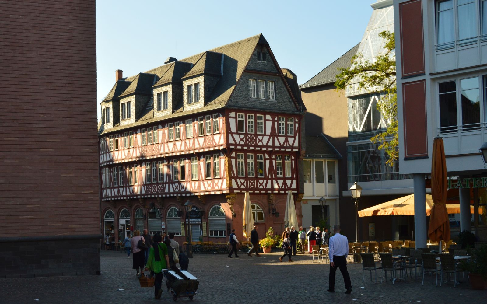 Frankfurt am Main (něm.) je největším městem spolkové země Hesensko a se svými více než 700 tisíci obyvatel je pátým největším městem SRN. Říká se o něm, že je z velkých evropských měst nejvíc americké. Toto multikulturní město je je finančním centrem Evropy, je to veletržní město a představuje významný dopravní a internetový uzel. Ve Frankfurtu nad Mohanem se narodil v roce 1749 básník, prozaik a dramatik Johann Wolfgang von Goethe. (zdrojem včetně městského znaku je wikipedia.org)