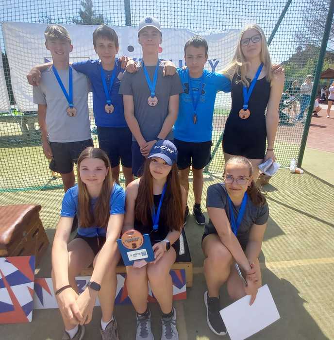 Po součtu bodů za čtyři disciplíny (trojskok, hod medicinbalem, švihadlo a sedy-lehy) cinkaly medaile. Aneta Kašparová brala v kategorii děvčat roč. 2009 stříbro a postup do krajského kola. V soutěži družstev se z celkového počtu 22 smíšených týmů vyhoupli naši sportovci na výborný bronzový stupínek!