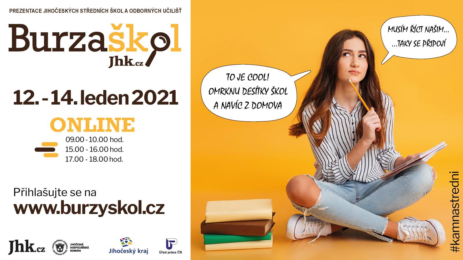 Jak už jsme vás informovali, naše škola se zúčastní online Burzy středních škol Jihočeského kraje, kterou pořádá Jihočeská hospodářská komora.