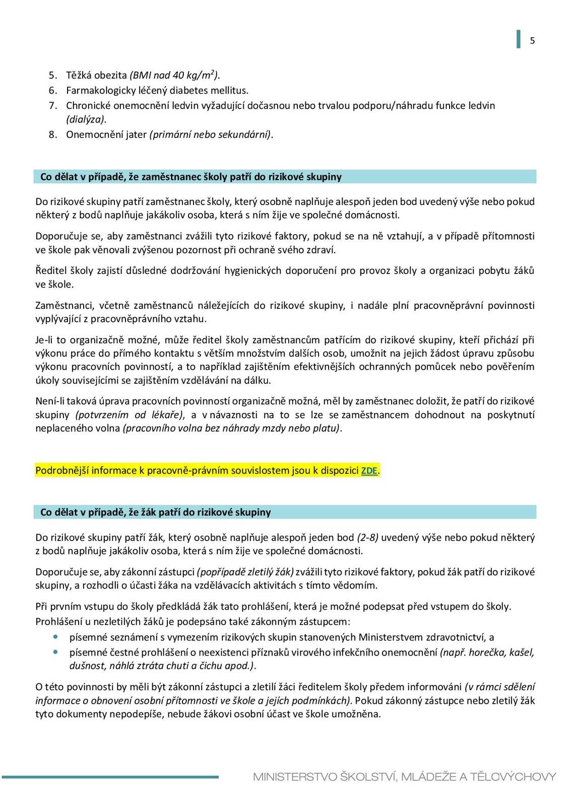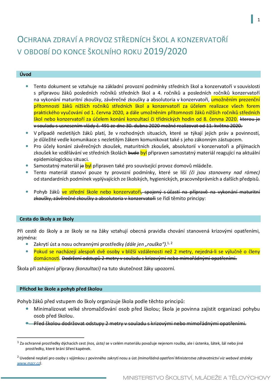 Ochrana zdraví - aktualizovaný materiál MŠMT ze dne 27.5.2020