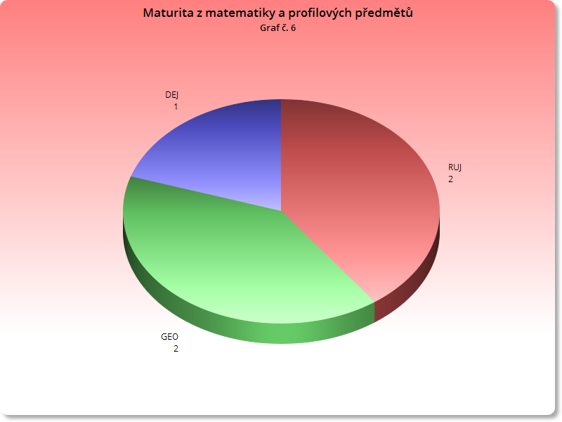 Jak už bylo uvedeno dříve, maturanti, kteří se rozhodli pro matematiku ve společné části, si ve třech případech přibrali angličtinu a dva maturanti ještě další jazyk (viz graf č. 6: Maturita z matematiky a profilových předmětů). Zajímavé je, že poslední tři uvedení maturanti si již nepřibrali k matematice další přírodovědný předmět.