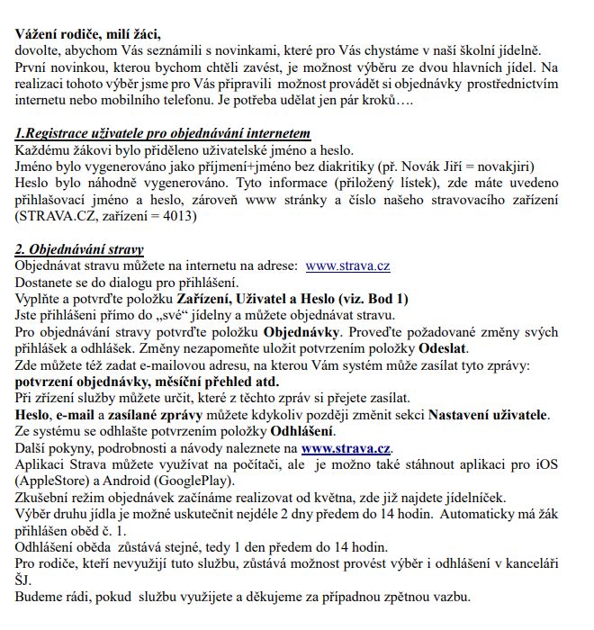 Leták s registrací a přihlášením k portálu www.strava.cz je v příloze.