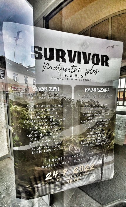 Nejinak tomu bylo i letos, pravda trochu netradičním čase v červnu a nikoliv jako obvykle na podzim. Žáci 3.A a kvinty se sešli o velké přestávce ve středu 1. června 2022 ve vestibulu školy a po vyvěšení plakátu s pozvánkou na maturák 24. září 2022 je společně vyfotografovala Kateřina Kolářová.