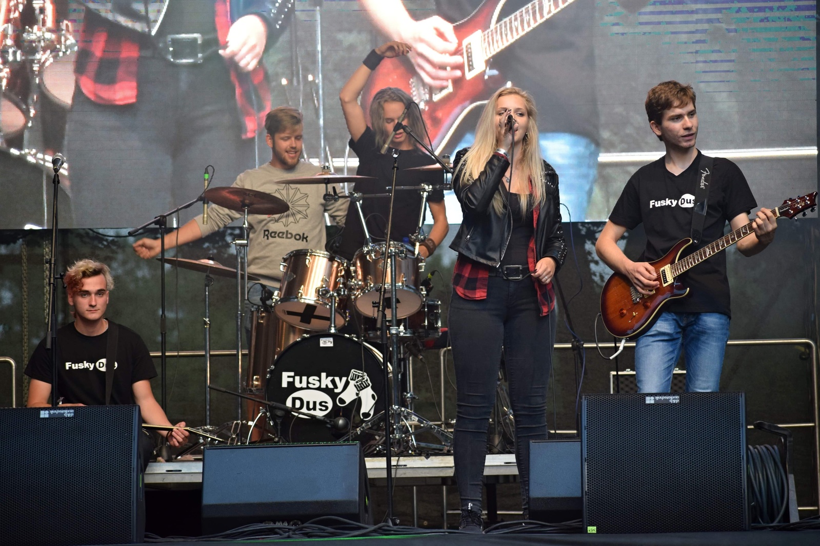 Tohle je velmi těžká otázka. Mám ráda všechny písničky, ale tak je samozřejmé, že starší písničky jsou ohranější, tudíž už nejsou úplně mezi nejoblíbenějšími, ale to tak bývá. Mohla bych tady vyjmenovat dobrých deset písniček, co mě baví a ráda je zpívám. Jednou ze tří nejoblíbenějších je písnička “Přátelství nebo láska”. Sice je stará už dobré tři roky, ale můžu si dovolit říct, že je naše nejznámější. Má rychle zapamatovatelný refrén a vidět lidi, jak si to se mnou zpívají, je skvělý pocit. Další moje oblíbená je určitě písnička “Tolikrát” na kterou máme natočený i klip na našem yt kanálu FuskyDus (kde si můžete poslechnou i další dvě nově vydané písničky). Tou poslední nejoblíbenější jsou vlastně všechny ostatní nové písničky, které dolaďujeme
